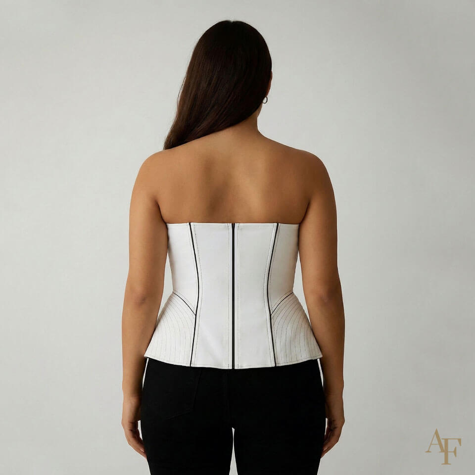 O Corselet com Peplum (Ref. 2510) é um molde digital desenvolvido pela Antonia Ferreira para quem busca uma modelagem estruturada, elegante e com visual profissional. Desde o primeiro contato, você percebe que a peça combina sofisticação com praticidade: o corpete pode ser confeccionado com vivos opcionais, possui barbatanas, conta com amarração frontal e inclui zíper destacável atrás. Além disso, você pode escolher produzir a amarração com ou sem forro, deixando o acabamento totalmente alinhado ao estilo desejado.