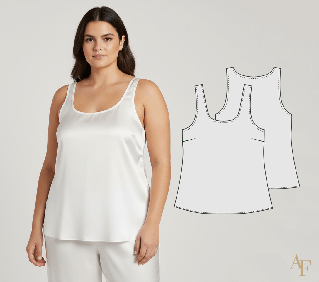 A Regata Clássica Plus Size em Tecido Plano (Ref. 2504) é um molde digital criado pela Antonia Ferreira para quem veste do P Plus ao XGGG e deseja uma modelagem elegante, confortável e extremamente versátil. Logo ao iniciar a costura, você nota que a peça valoriza o corpo plus size com um caimento soltinho, leve e sofisticado. Além disso, por ser uma regata clássica, ela combina com calças, saias, shorts e sobreposições, funcionando tanto em looks sociais quanto casuais.