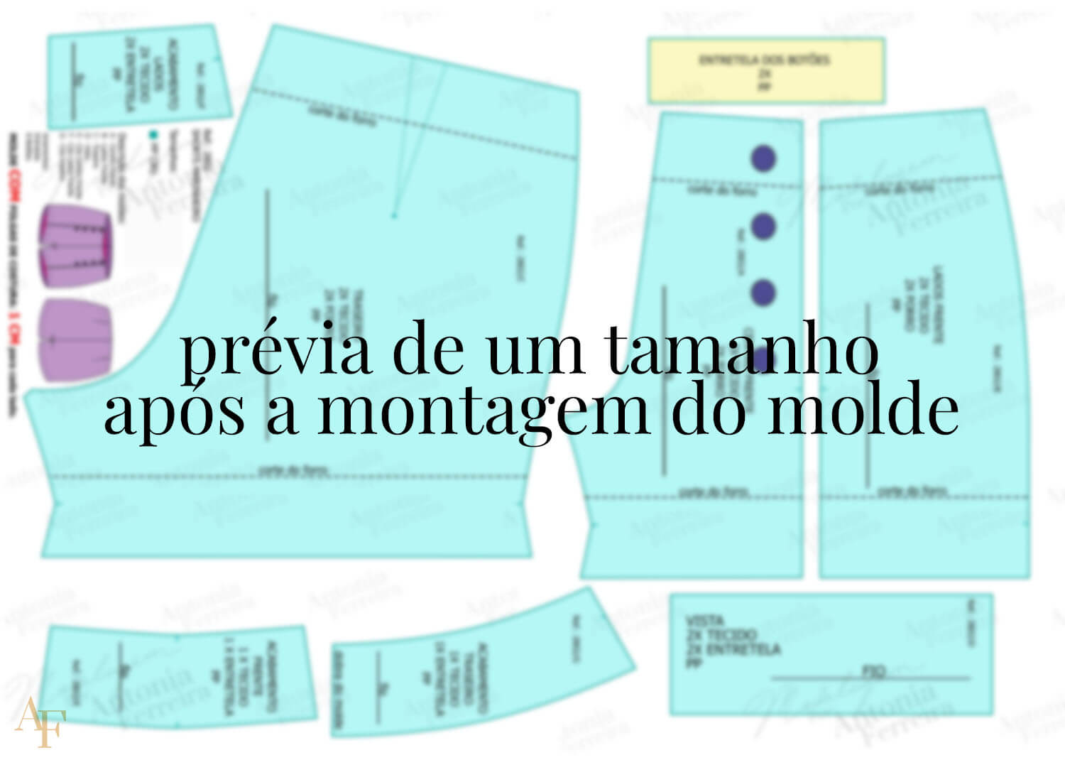 A modelagem segue o Método Antonia Ferreira, oferecendo encaixe preciso, proporções equilibradas e excelente caimento. Por isso, o molde já inclui folgas de costura, orientação do fio e identificação completa das peças, o que facilita o corte e a montagem, inclusive para iniciantes.