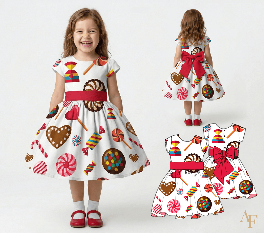 O Vestidinho Franzido Infantil com Cinto de Laço (Ref. 2608) é um molde digital delicado, versátil e perfeito para quem deseja costurar peças infantis com acabamento profissional. A modelagem, criada com base no Método Antonia Ferreira, inclui saia franzida, cinto de laço, manguinhas baby look e abertura com abotoamento nas costas. Além disso, você pode escolher confeccionar o vestido forrado ou sem forro, conforme a ocasião.